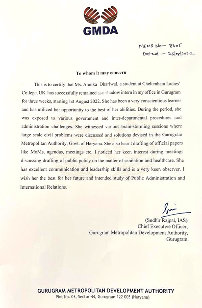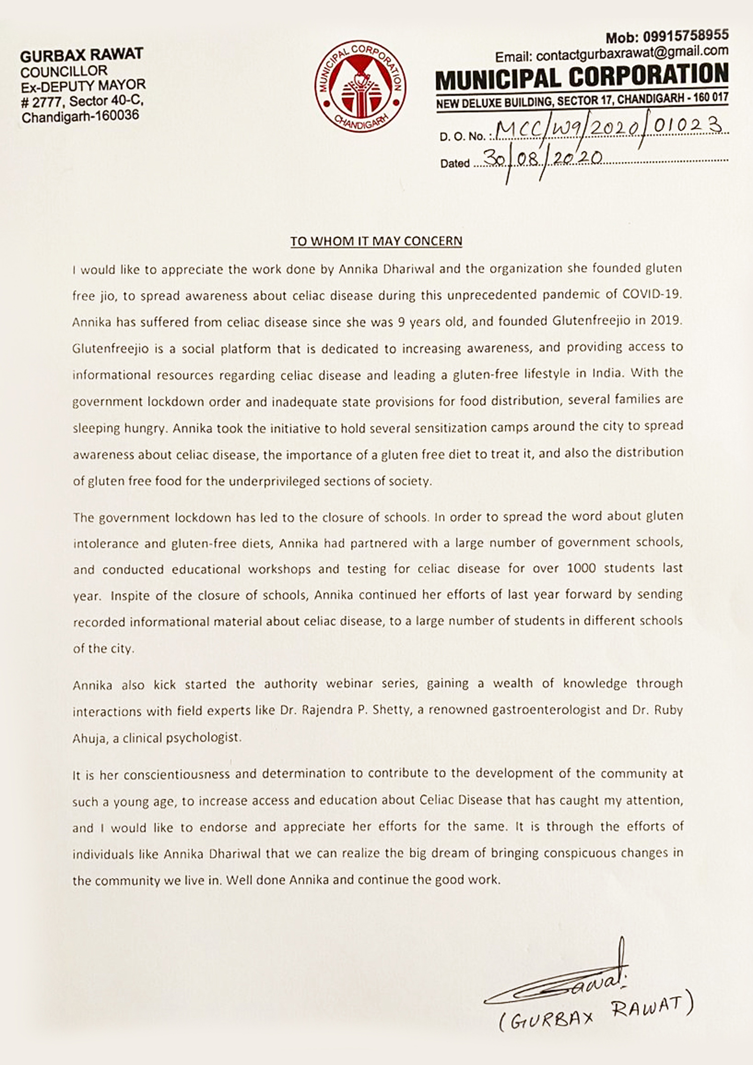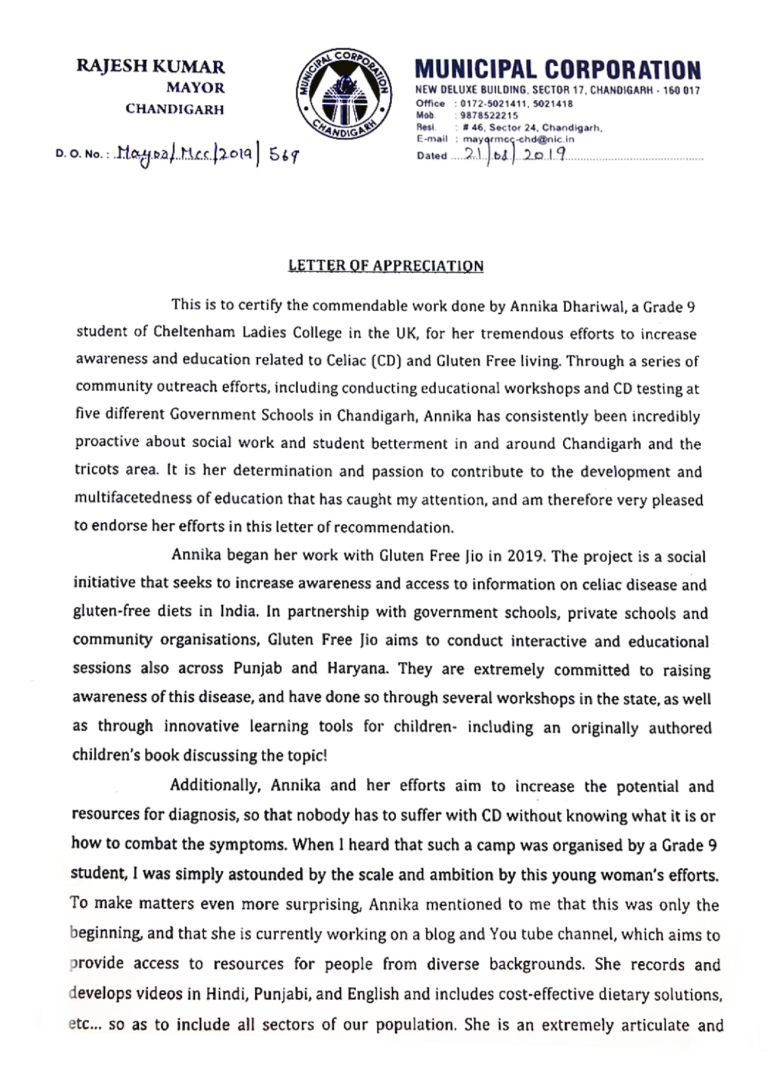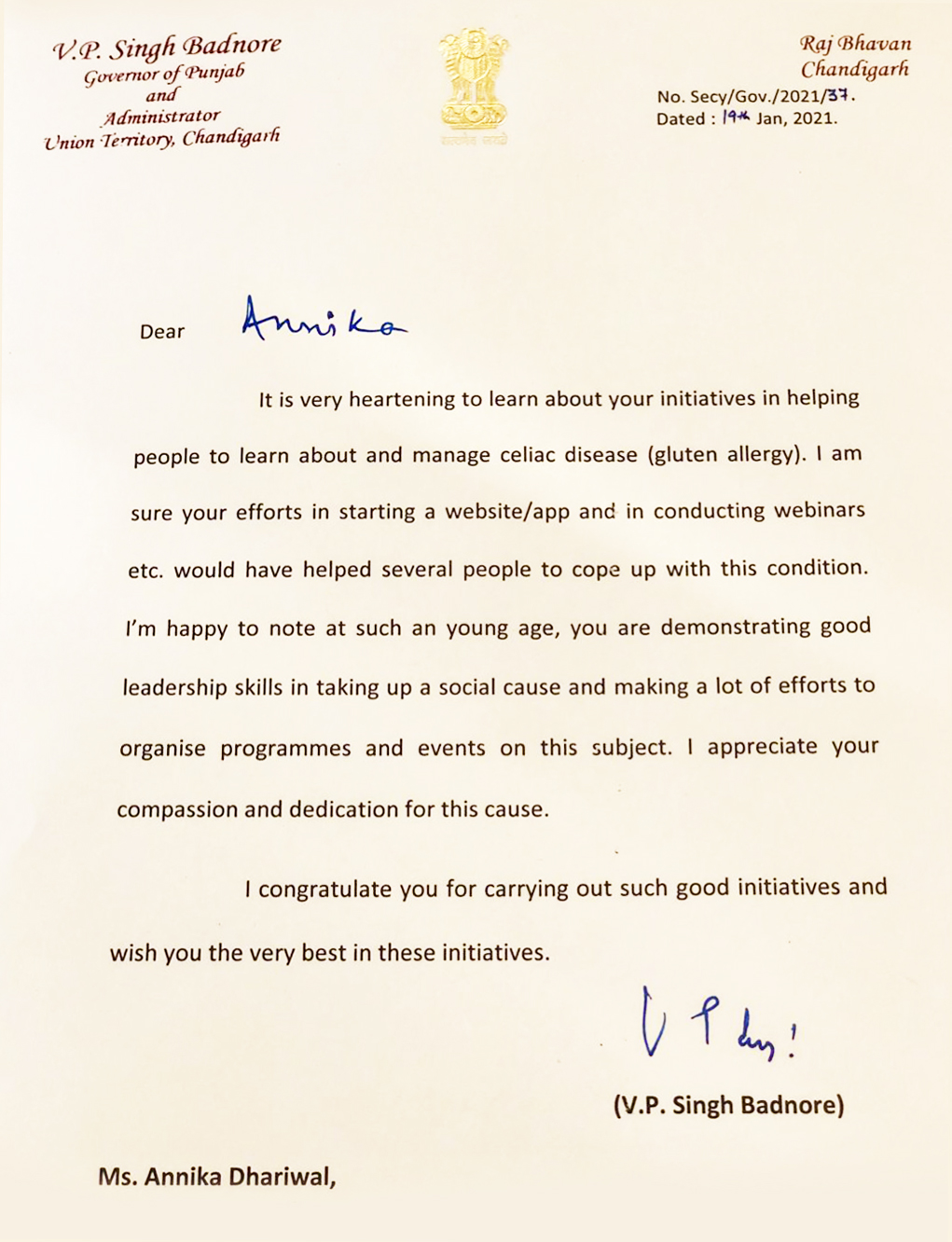 Appreciation Letter from Hon’ble Governor of Punjab and Administrator of Chandigarh