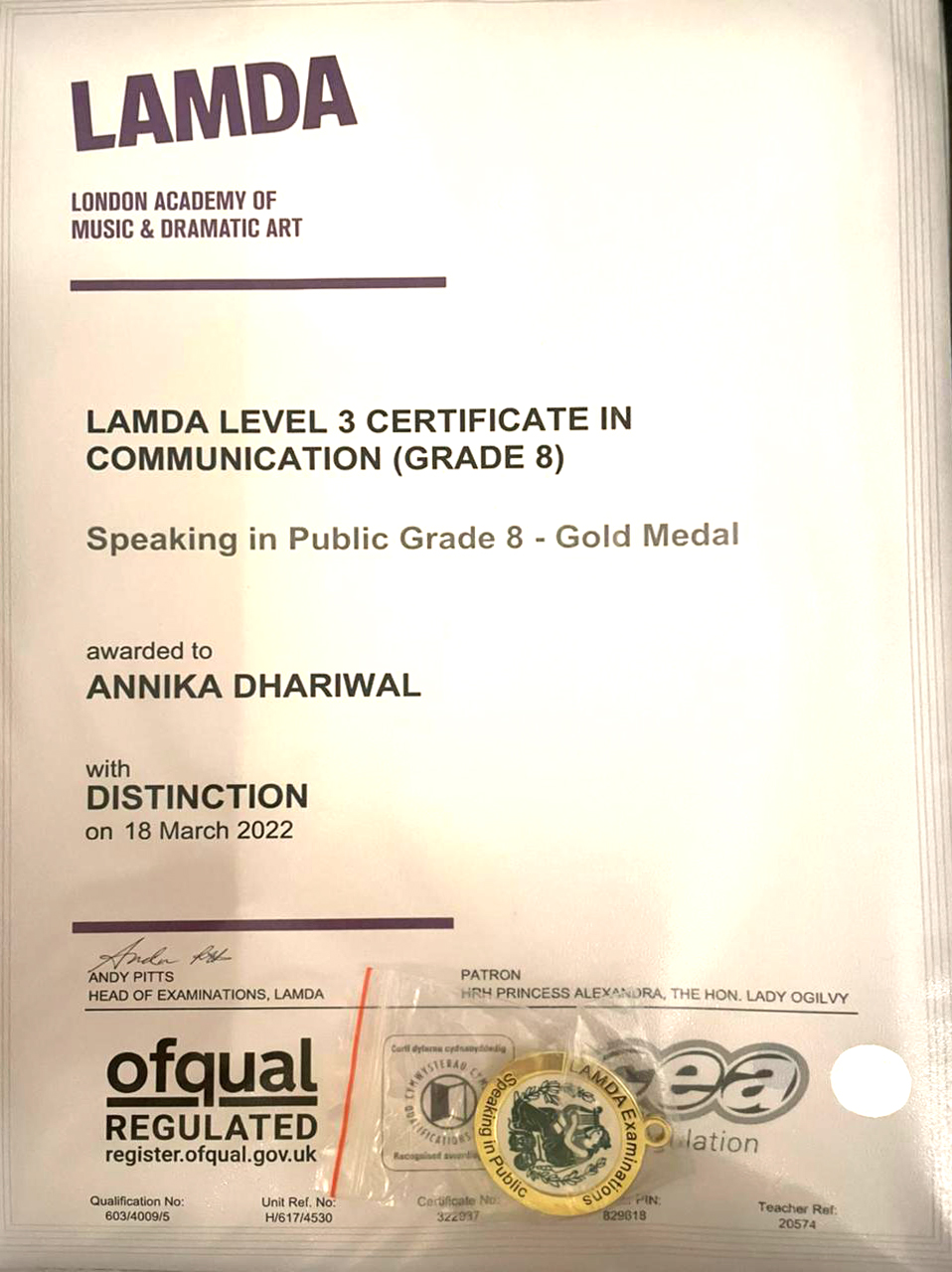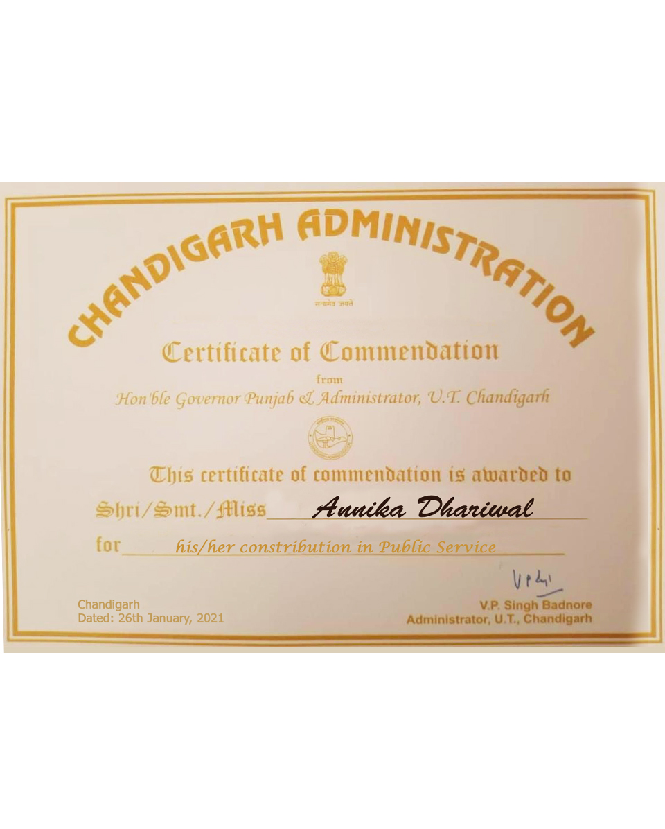 Public Service Award from Hon’ble Governor of Punjab and Administrator of Chandigarh