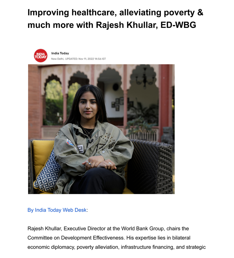- Shadowed him for two weeks and gained insight into the working of the World Bank with a special focus on Southeast Asia, culminated in a published interview, which discussed the country partnership framework in the Indian context, Priority leading sectors and the dealing of humanitarian crisis.