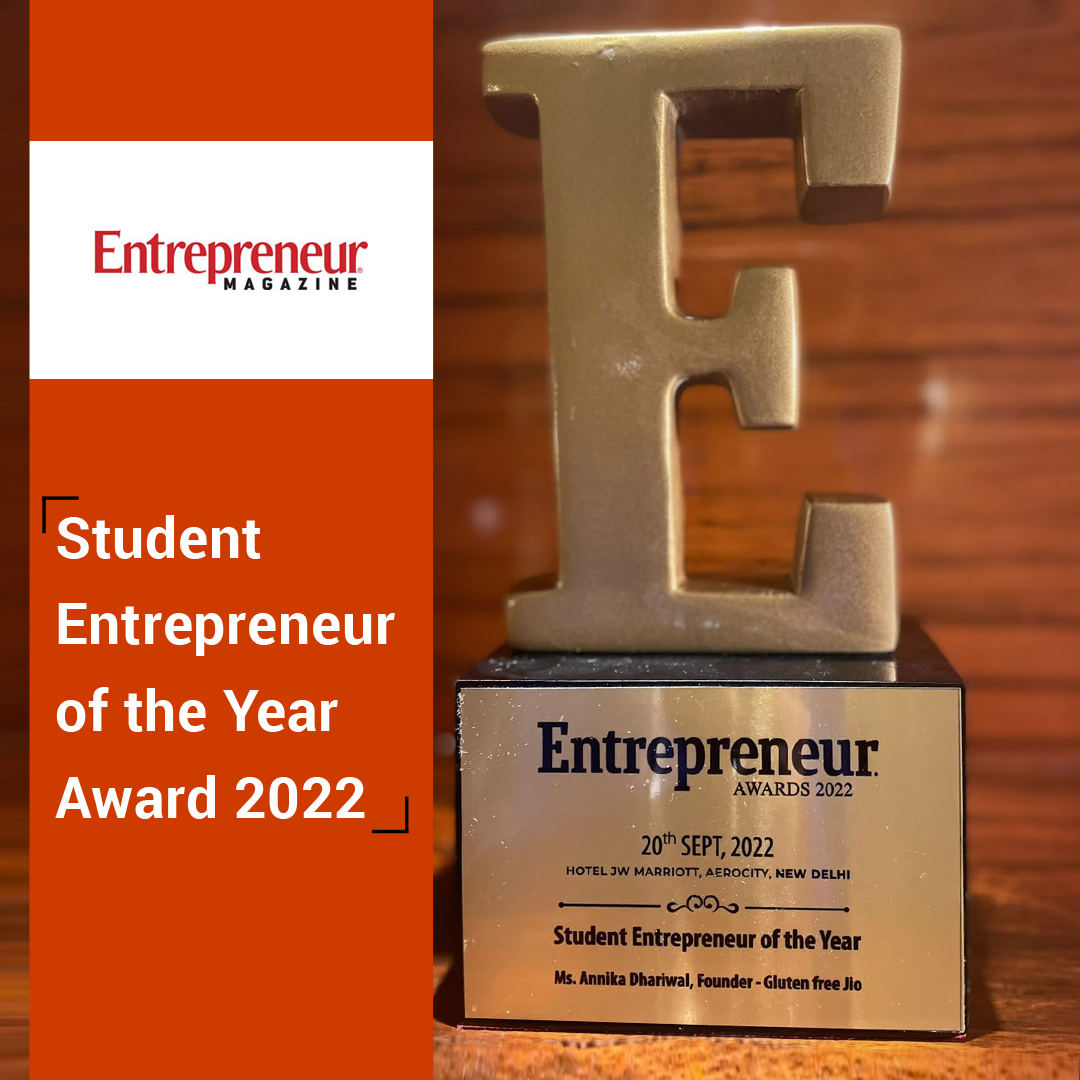 I am pleased to share that I have been awarded the Student Entrepreneur Award 2022 by Entrepreneur Magazine for my social enterprise, Gluten Free Jio. The awards ceremony was held in New Delhi on Tuesday 20th September.